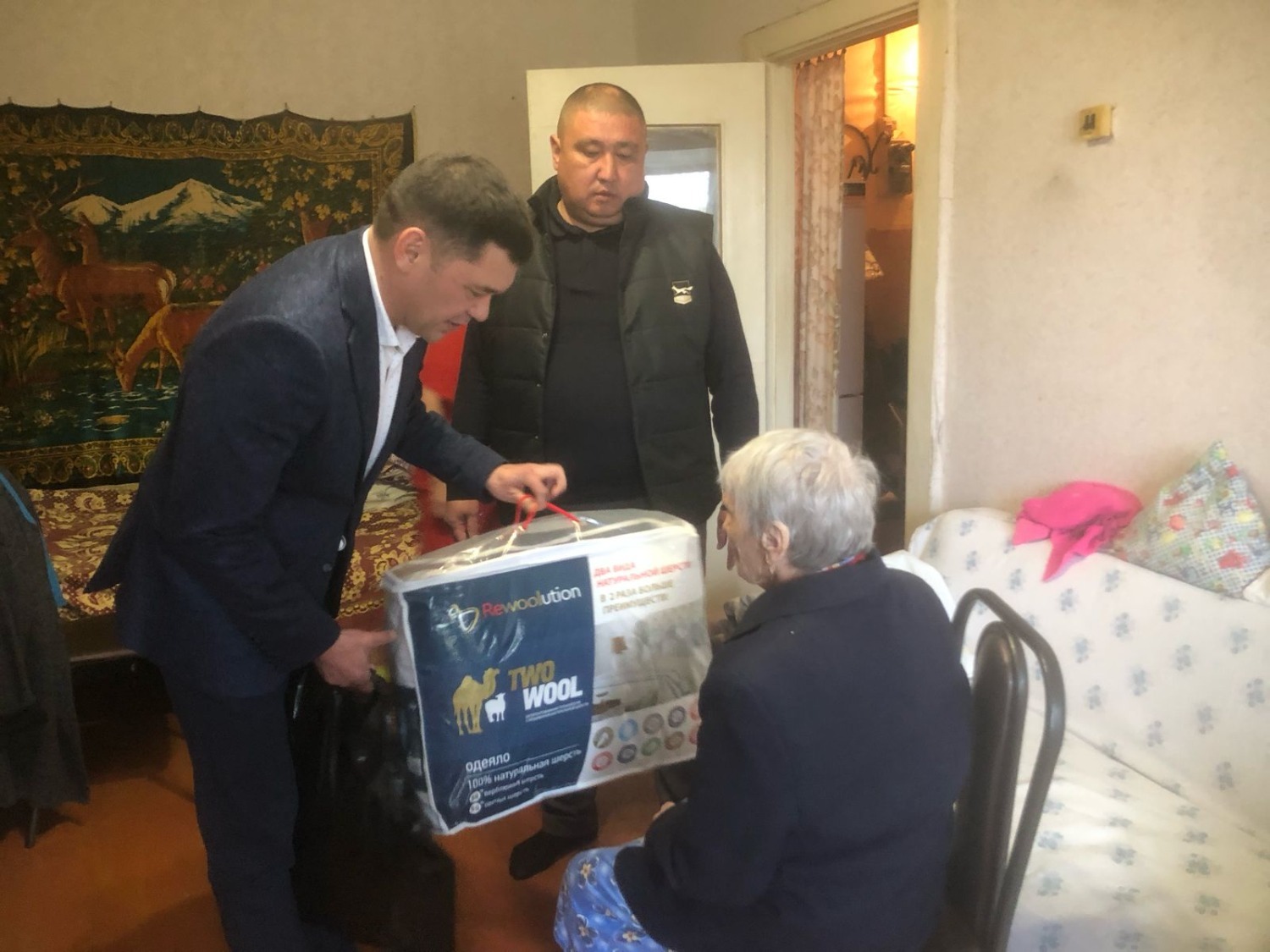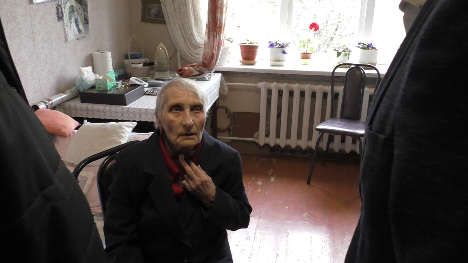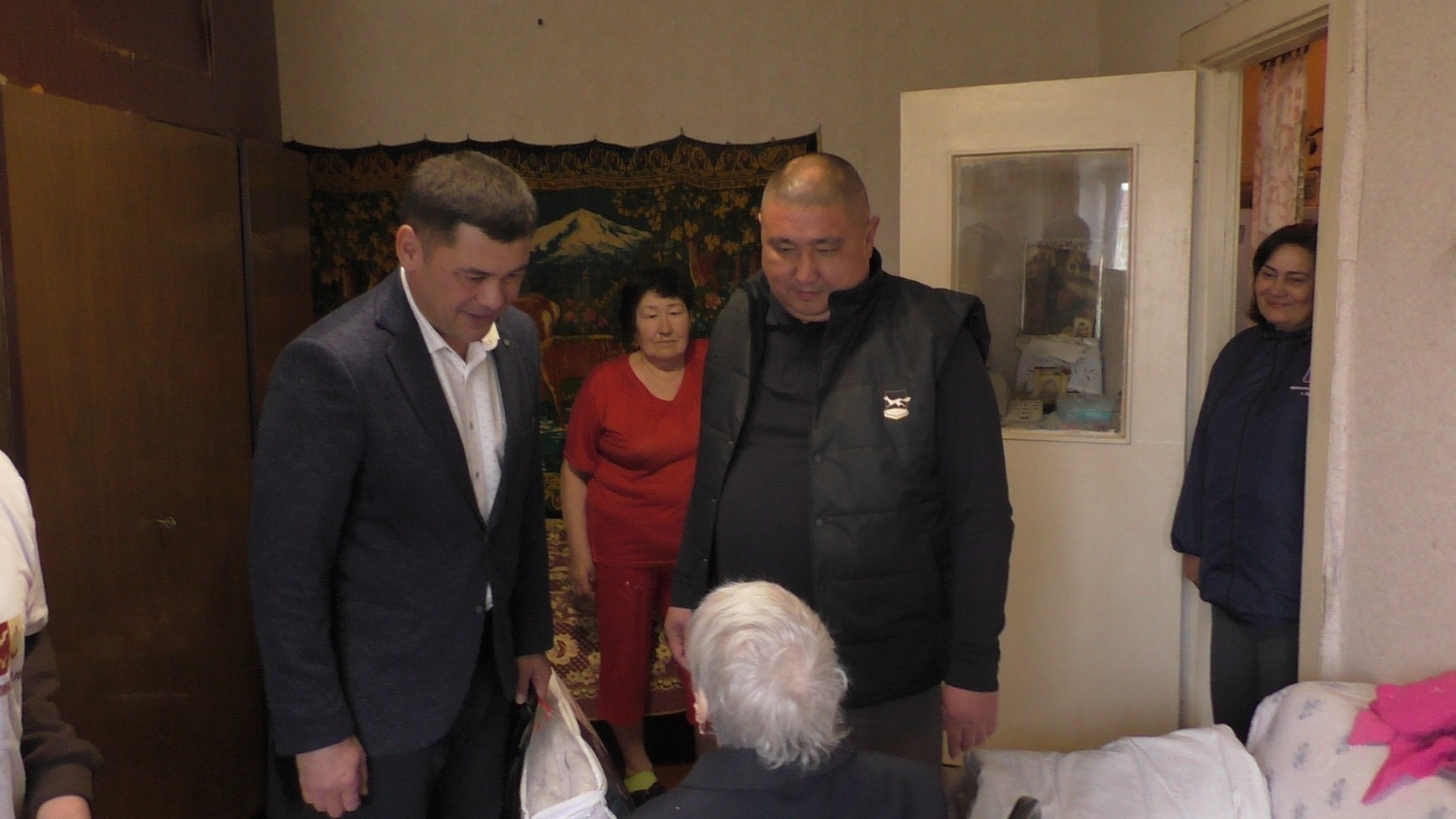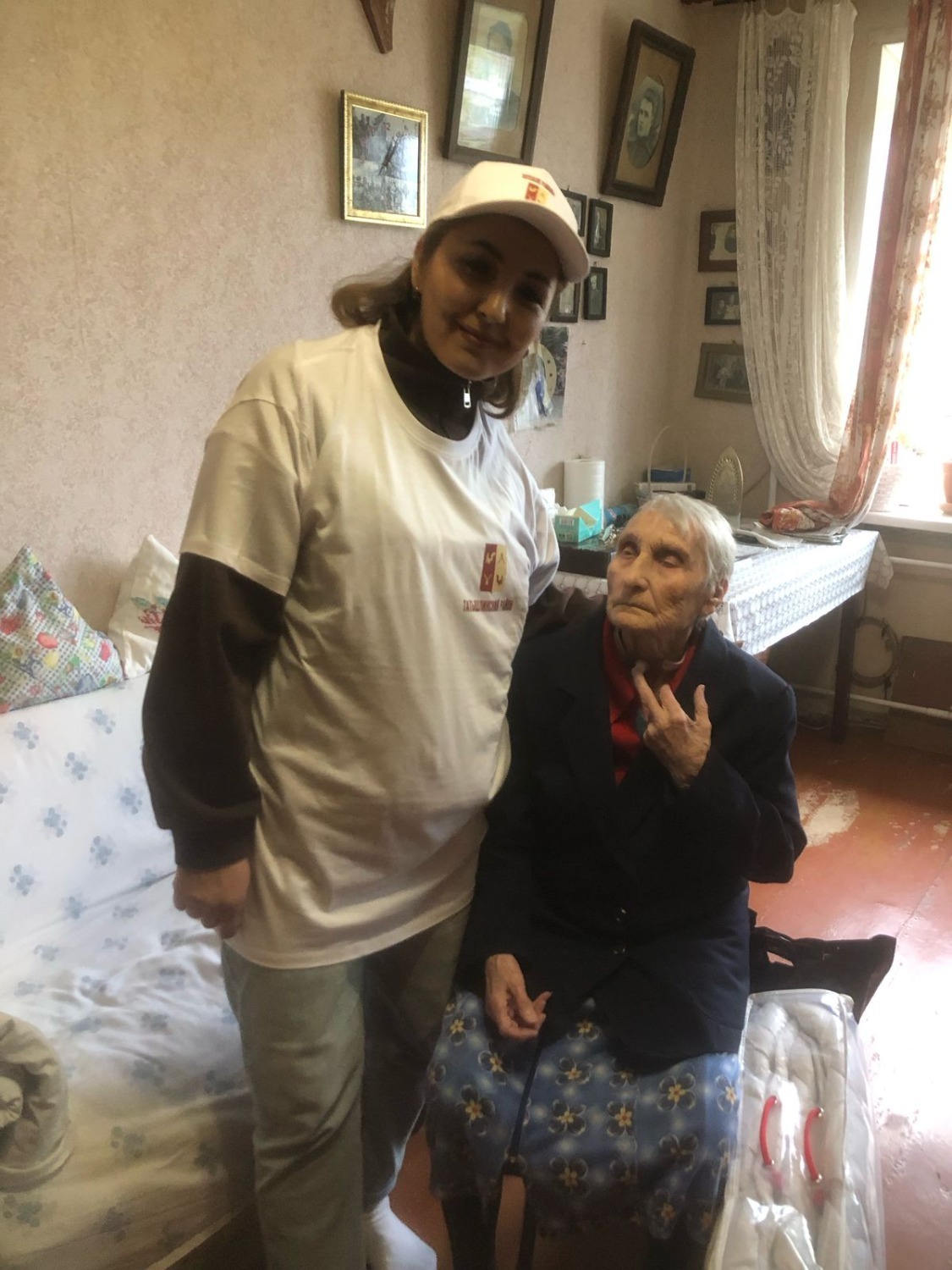 Главы администраций двух районов зашли проведать ветерана и, выразив слова благодарности за ее ратный труд на войне, вручили подарки.