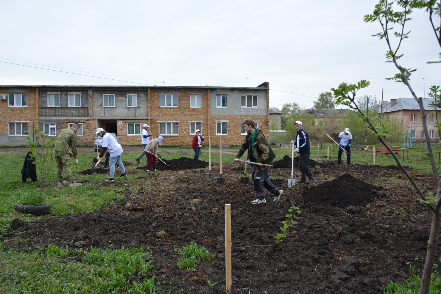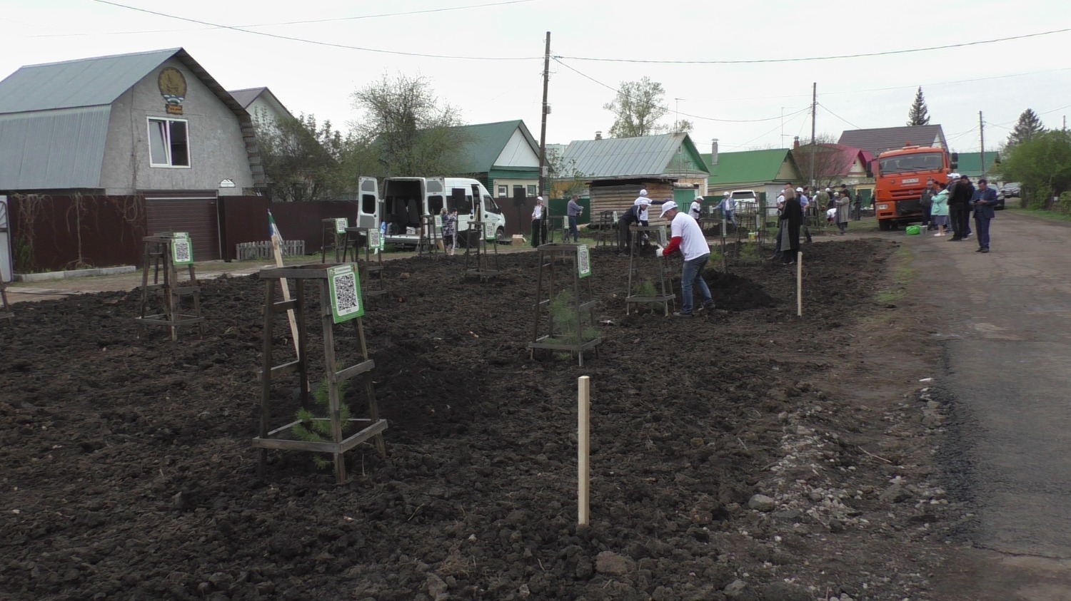 В посадке деревьев очень активно участвовали и сами жители улицы. Говорили, что поначалу не очень верили в затею, но вчера и сегодня, увидев, как все завертелось, были и удивлены, и обрадованы: вовсю работали лопатами, молотками, очень придирчиво выбирали саженцы, которые собирались посадить возле своих домов. Надо сказать, что на улице соседствуют и частные усадьбы и многоквартирные дома. Одна часть деревцев была высажена на участке рядом с детской площадкой.